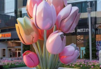 該雕塑以紅色不銹鋼打造綢帶般的靈動造型,點綴金色雀鳥,于綠意與竹林間形成視覺焦點,是兼具藝術(shù)感與文化性的景觀不銹鋼雕塑。